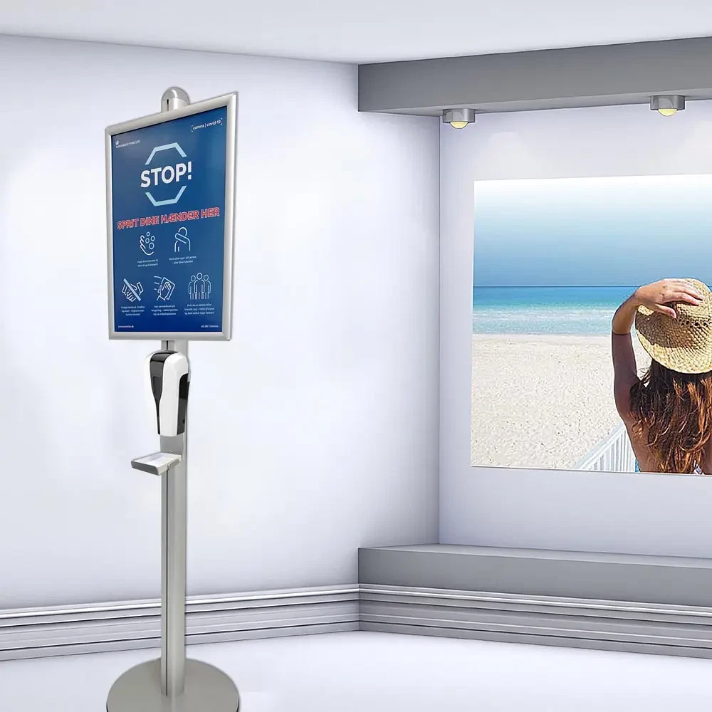 Sort/hvid dispenser med sensor til 1000 ml. flydende håndsprit eller gel. Batterier er ikke inkl. Til indendørs brug. Kan monteres på f.eks. en Multi Stand eller en væg.